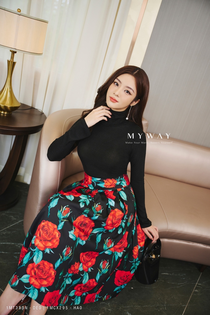 Set Bộ Phối Chân Váy Xòe Màu Đen Chất Liệu Tơ Tằm Thoáng Mát – Ah13X185